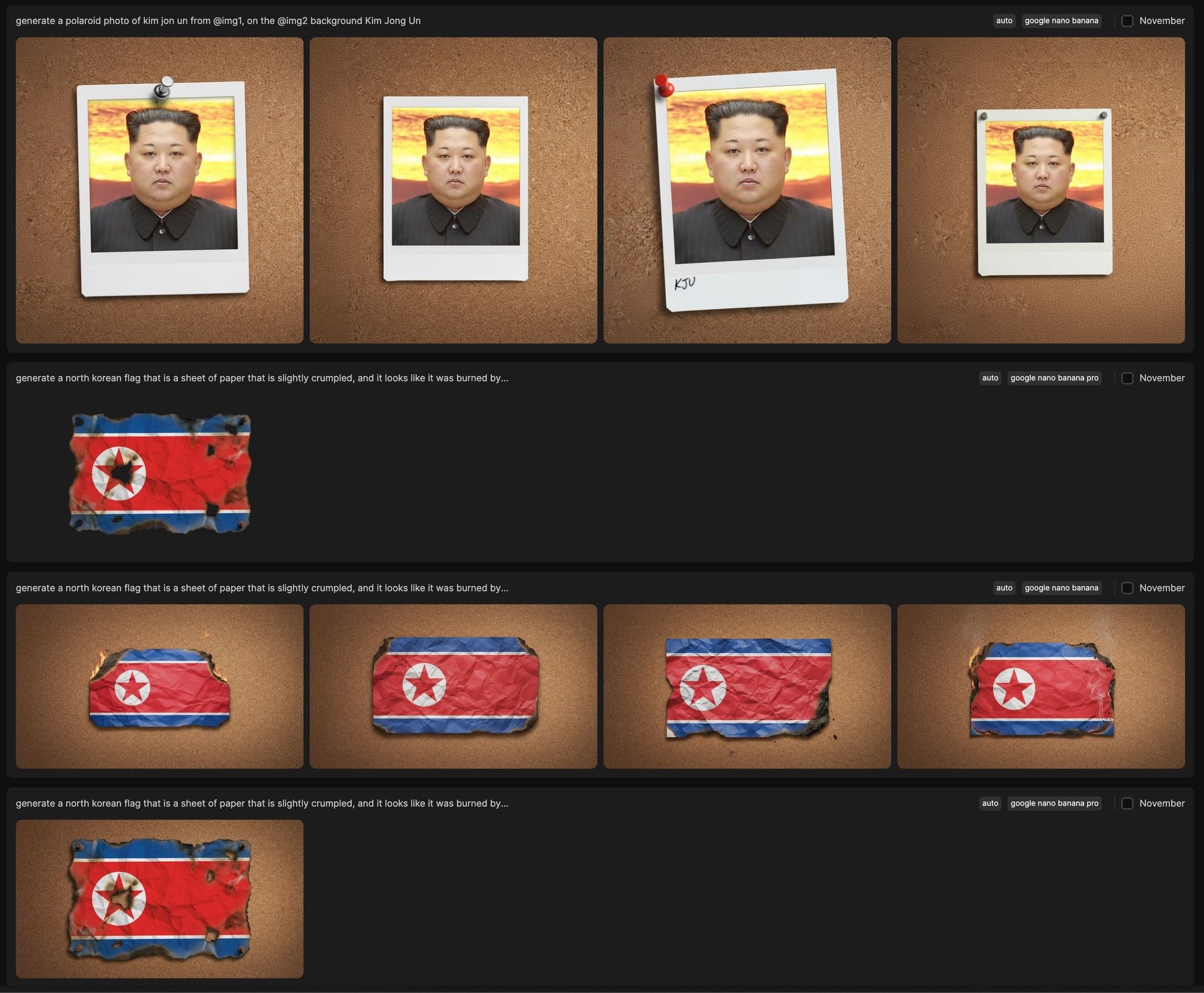 As for the North Korean flag and the Kim Jong Un polaroid, those were basically one-shot with AI and then properly comped inside Photoshop.