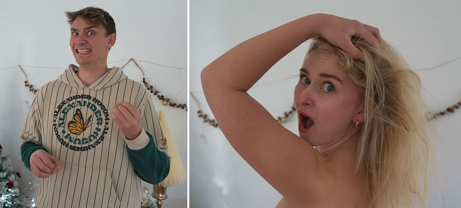 I started by cleaning up both character shots in Camera Raw, making sure the skin tones, highlights, and shadows matched the dramatic, high-energy look we were aiming for. For the background, I sourced a clean bathroom environment and then built the damaged wall section manually using a mix of texture plates, debris overlays, and custom masking. The burst pipe effect was pieced together from multiple water-spray assets