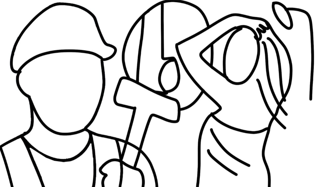 Compositionally, my goal was to create a scene that feels chaotic and energetic, but still guides the viewer’s eye in a clear, intentional way. The two main subjects are positioned on opposite sides of the frame, creating a strong left-to-right narrative flow: the worker, the impact, and then the reaction.