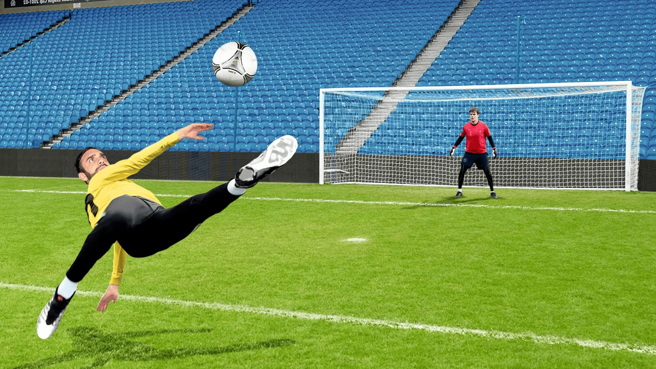 Sizing was hierarchical, so that Futcrunch stood out first, then the ball, and then the directing line toward the keeper and the goal.