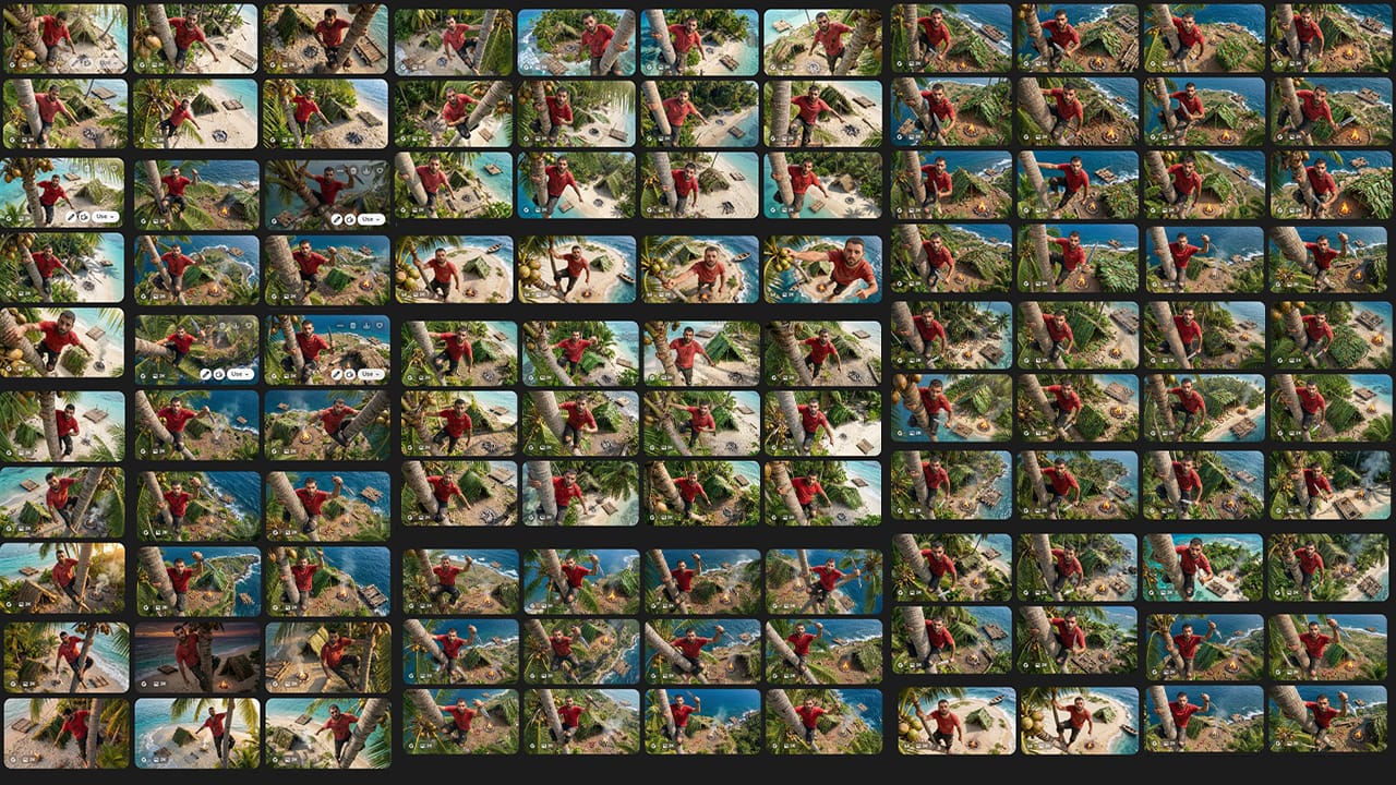 I went through many generations and narrowed them down to four options, eventually choosing the second as the foundation for the thumbnail. Since I wanted to emphasize the scale of the entire island, that option felt like the strongest starting point.